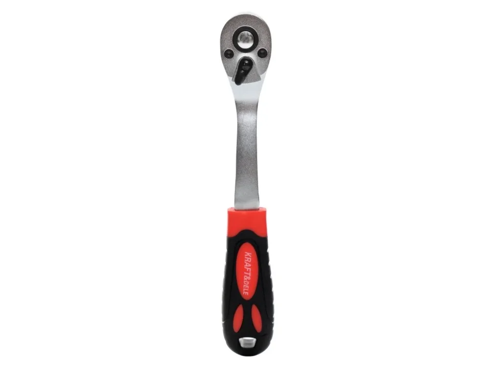 Ráčna se zakřivenou rukojetí od značky Kraft&Dele, model KD11000, o velikosti 1/4\\“, je vyrobena z pevné chrom-vanadiové oceli, což zajišťuje vysokou odolnost. Je vybavena západkovým mechanismem s 72 zuby.
