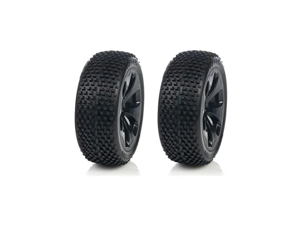 Kompletní kola Medial Pro 3.3\\“ Velox s diskem Raptor pro RC modely aut. Disk má černou barvu, tvrdost směsi pneumatiky je M4 – super měkká.