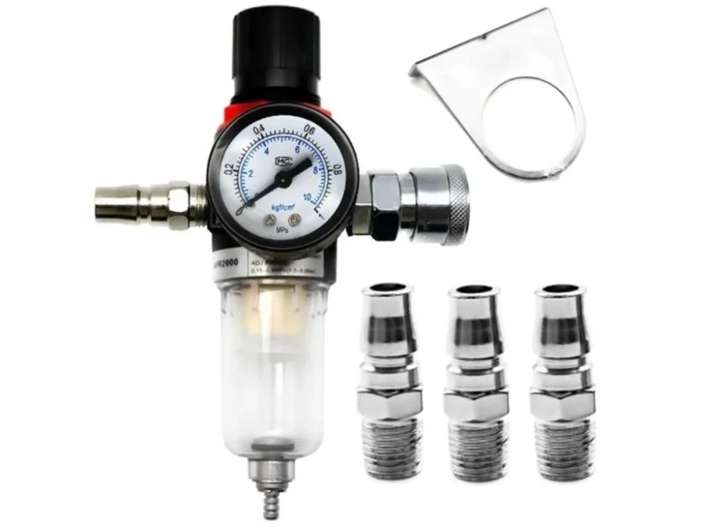 Tento reduktor je vybaven kompletním blokem pro přípravu vzduchu. Přesný manometr s dvojitou stupnicí v barech a PSI v ochranném sklíčku umožňuje neustálou kontrolu tlaku.